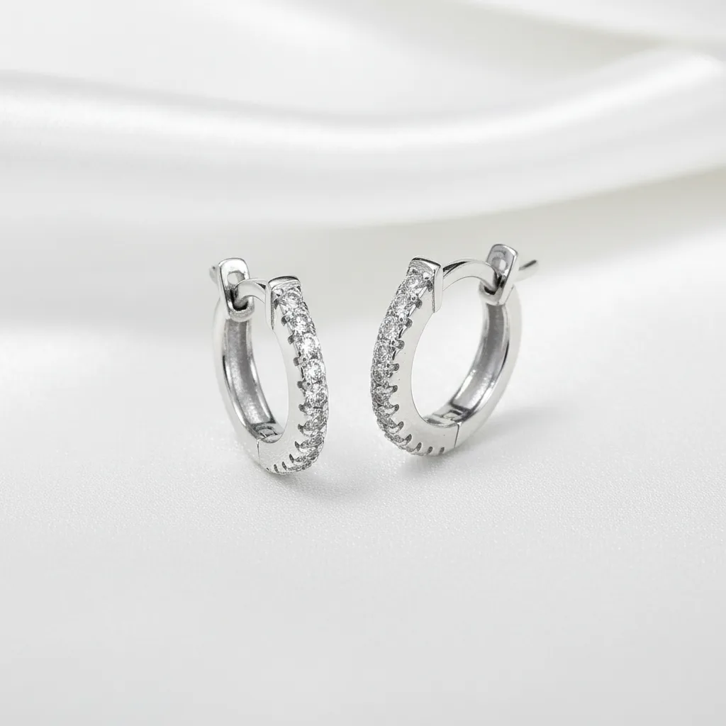 Perfect for everyday elegance, these small huggie hoops feature a row of brilliant pavé-set stones along the front with a secure hinge closure.