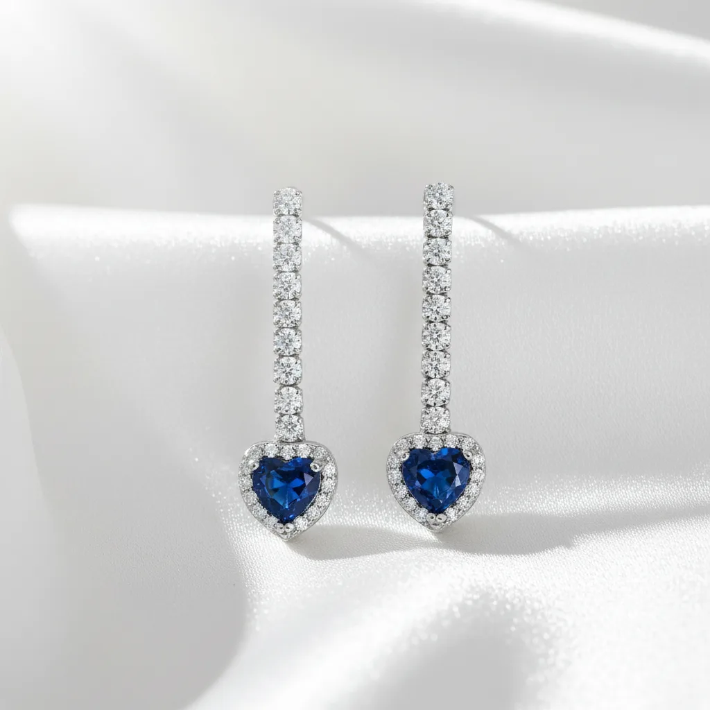 Sapphire Blue Heart Drop Earrings