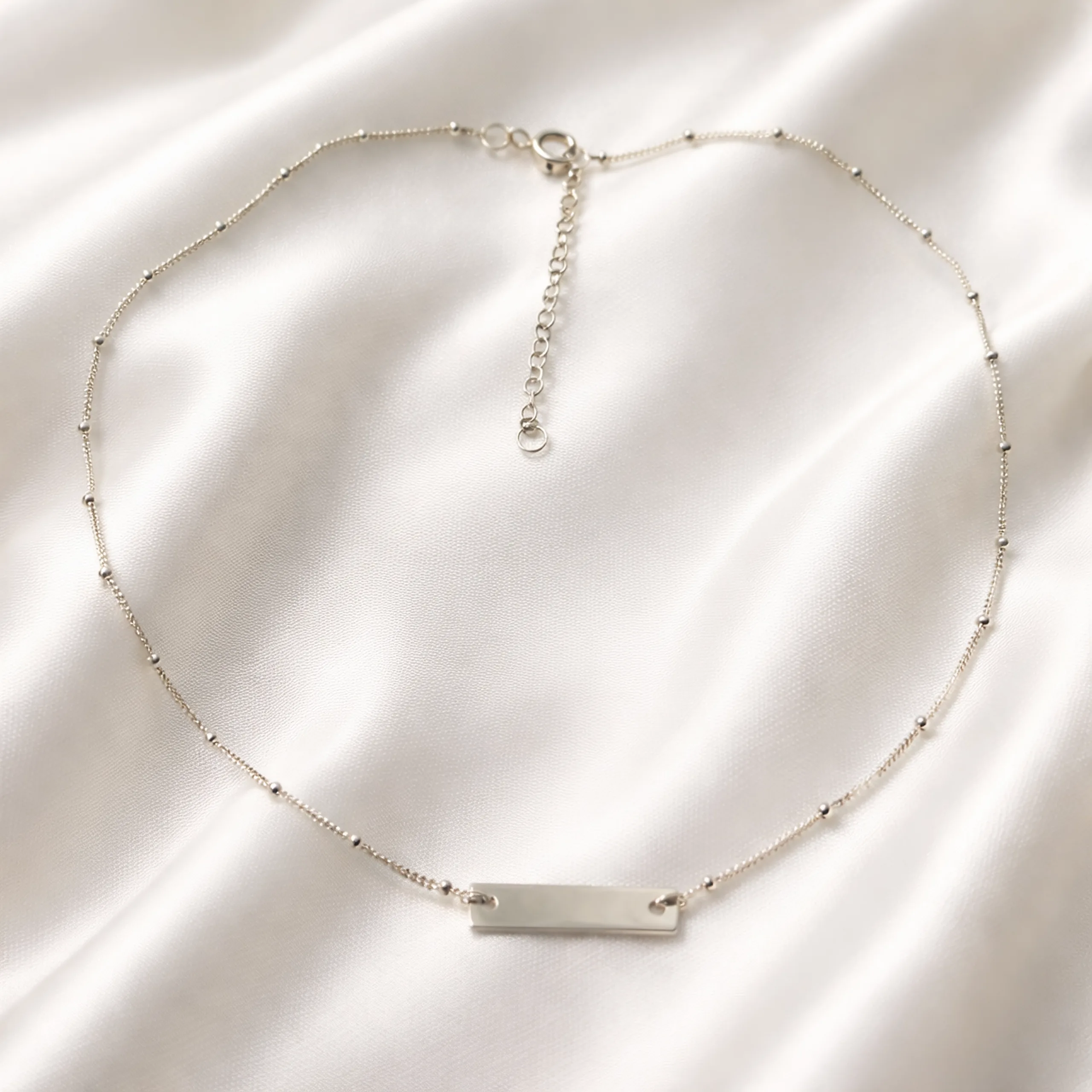 Modern luxury in a sleek silhouette. This horizontal bar necklace on a beaded satellite chain is the ultimate layering staple. Crafted from premium silver, it provides an understated yet sophisticated aesthetic for the modern South African woman.